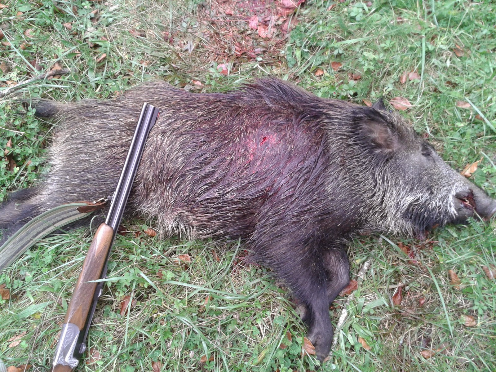 Ahir vaig matar-ne un de senglar, ja feia dies que no tenia oportunitat de tirar i per fi va arribar el dia. Em va sortir a la parada molt ràpid ja que un company li havia tirat feia un moment. Li vaig tirar un tret a la costellada, i al cap de poc ja arriben dos gossos gascons mossegant- lo. Un mascle de40 kg. Caçarem 5 senglars.